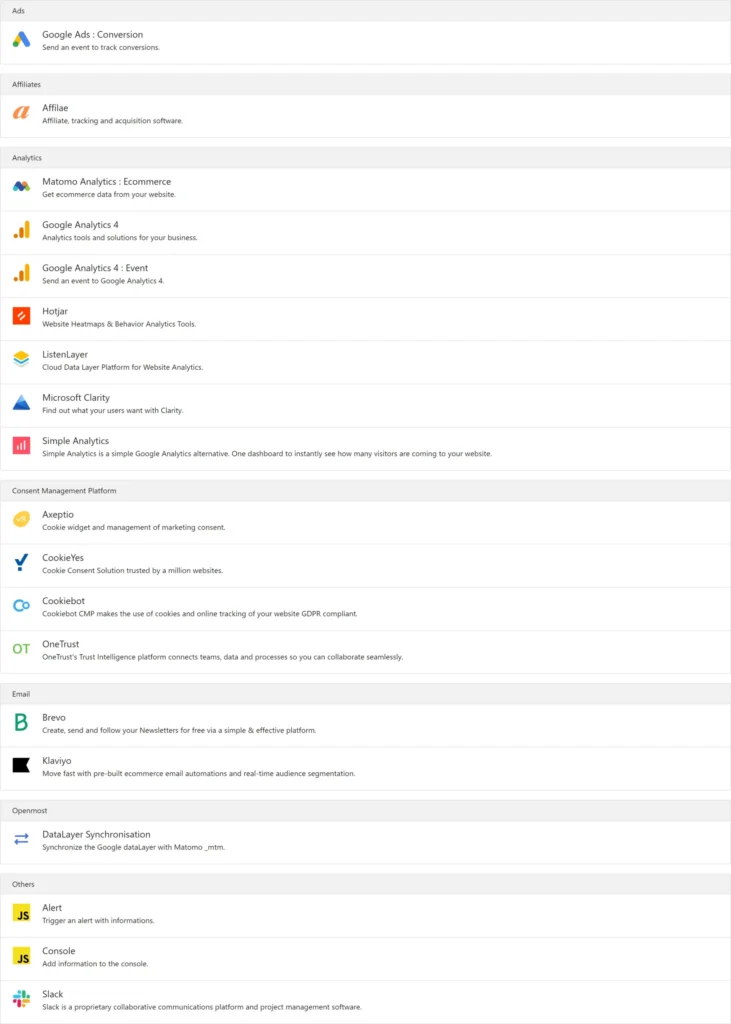 One of GTM’s strengths is the multitude of tags in its catalog, we want to do the same with this plugin to make using Matomo Tag Manager as simple as possible.